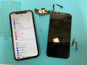 画面が割れてしまった、リンゴループにより起動しなくなってしまった症状です。