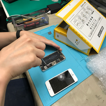 お客様からお預かりしたiPhoneの修理を開始します。受付時には確認できなかった不良等が修理中に判明した場合はお客様にご連絡をし、修理の有無を確認します。